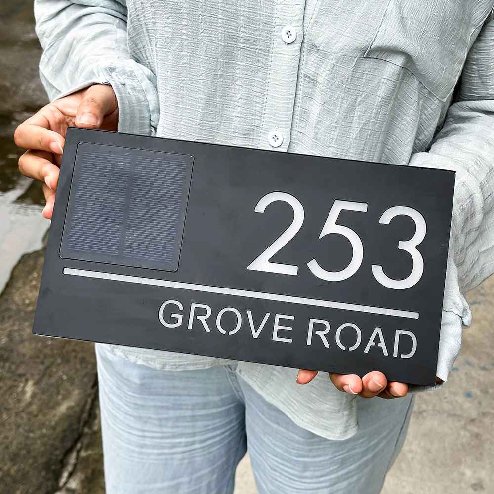 Yes! You can enter your desired number and/or name. We precisely engrave your house number according to your specifications.